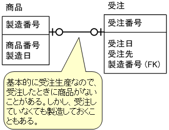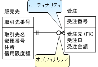 | 相手のエンティティのデータに対して、この終端に接続されるエンティティのデータは必ず1個以上存在する。 | 受注に対して受注明細など | |