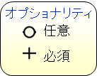 | 相手のエンティティのデータに対して、この終端に接続されるエンティティのデータは必ず1個存在する。 | 受注に対して顧客など(顧客の存在しない受注はありえない。顧客の複数ある受注もありあえない) |