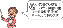 最後に、新しいエンティティ(「顧客」エンティティ)の主キーである「顧客番号」を、新しい「受注」エンティティに識別子として加えて、第三正規形の完成です。