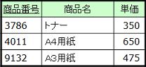 この内、 「商品名」と「単価」は、主キーの一部である「商品番号」だけで一意に決めることができます。つまり、 「商品名」と「単価」は「商品番号」だけに依存しており、 「商品番号」 が同じでさえあれば「受注番号」が異なっていても同じ値になります。