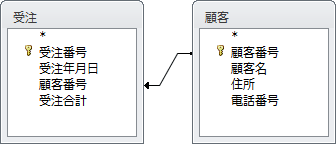 FROM 顧客 INNER JOIN 受注 ON 顧客.顧客番号 = 受注.顧客番号)