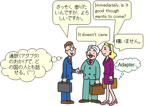Adapterパターンは、既存のクラスにはまったく手を加えずに、目的のインターフェースにあわせようとするものです。また、 Adapterパターンでは、既存のクラスのソースが必ずしも必要ではありません。既存のクラスの仕様だけわかれば、新しいクラスを作ることができるのです。