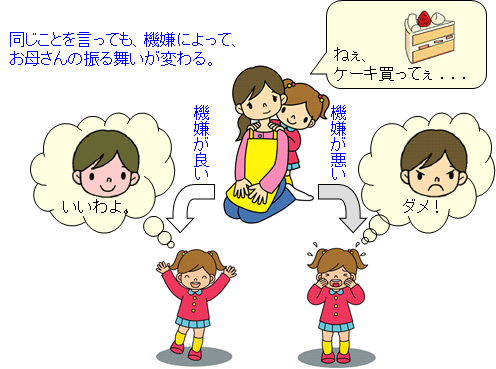 しかし、機嫌の悪い状態のお母さんにこれらのお願いをしても聞き入れてくれないかもしれません。 お母さんは状態によって、振る舞いが変わるわけです。