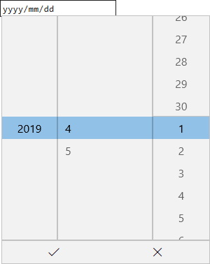 リストは、では、マウスを入力欄内に入れると入力欄の右側に ▼ が表示されますので、入力欄をクリックするとリストが表示されます。は、▼ が表示されない上に、何も入れられていないときに入力欄を2回クリックする必要があります。